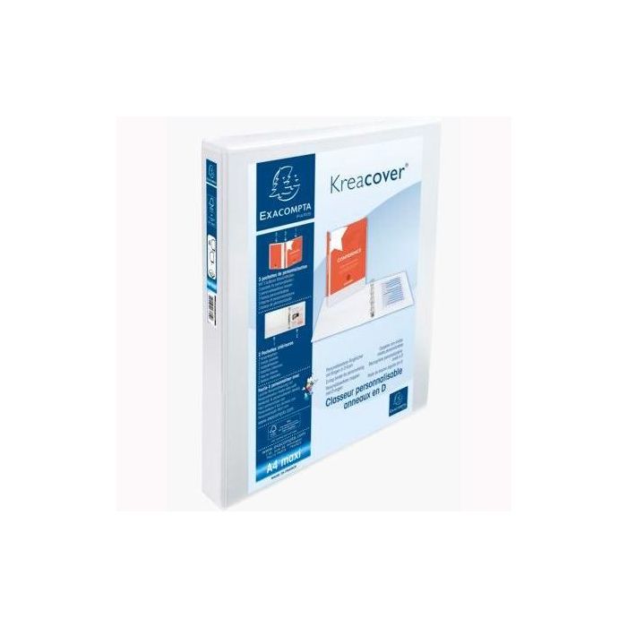 Exacompta Carpeta 4 Anillas Mixtas 30 mm Kreacover Forrada Pp A4+ Personalizable 3 Bolsos Exteriores Blanco