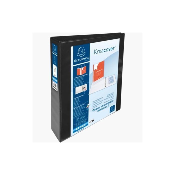 Exacompta Kreacover Carpeta 4 Anillas Mixtas 40 mm Forrada PP A4+ Personalizable 3 Bolsos Exteriores Negro