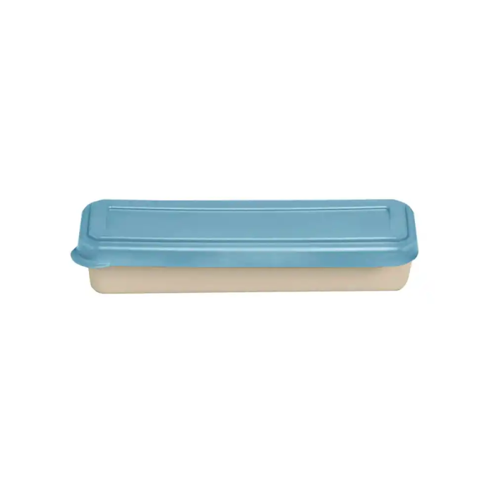 Exacompta Fiambrera Beige con Tapa Azul, 3 Cubiertos Reutilizables, 205x65x40 mm