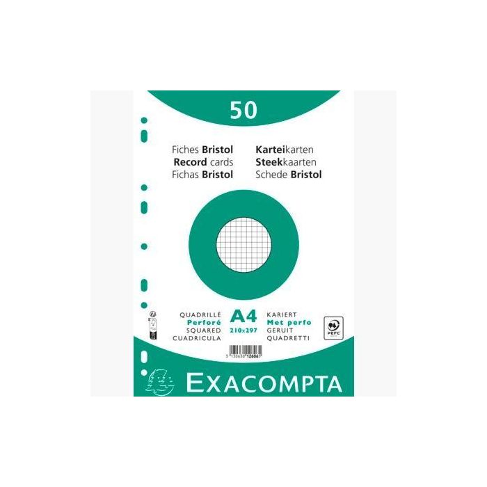 Exacompta Fichas Cartulina Bristol Taladro A4 Cuadrícula 5x5 Pack De 50 Blanco