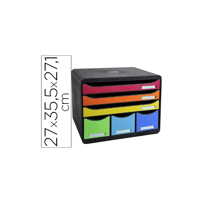 Exacompta Fichero Cajones Sobremesa Iderama Arlequín, 6 Cajones Multicolores, Clasificador DIN A4+, 270x355x271 mm
