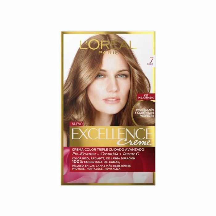 Descubre la maravilla de la Crema Color Excellence de L'ORÉAL PARIS, un tinte que ofrece una cobertura total de canas gracias a su innovadora fórmula de Triple Cuidado. Diseñada para proporcionar un color radiante y duradero, esta crema incluye un colorante protector, un champú con pH neutro y Savia Nutritiva, todo lo necesario para cuidar tu cabello durante el proceso de coloración.