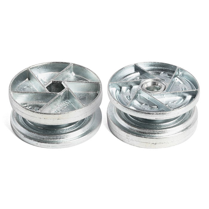 La excéntrica doble espiral CLOCK Ø35 zincado de la marca Indaux es un componente de unión para ensamblajes de muebles con alta resistencia. Esta fabricada en zamak y asegura muy bien la estabilidad de estructuras desmontables o modulares.