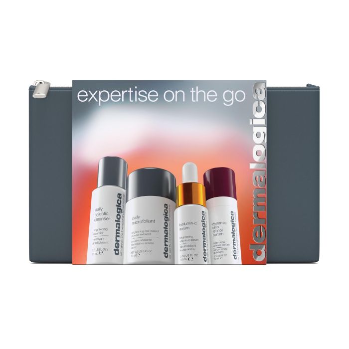 Expertise On The Go Set Dermalogica: Daily Glycolic, Cleansing, Cleansing Gel, For Face, 30 ml + Daily Microfoliant, Exfoliating, Exfoliating Powder, 13 g + Biolumin-C, Vitamin C, Brightening, Serum, For Face, 10 ml + Dynamic Skin, Retinol, Anti-Wrinkle,