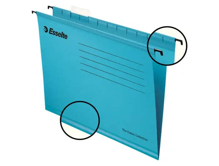 Carpeta colgante esselte din a4 cartulina 210 g/m2 visor superior lomo v color azul caja de 25 unidades