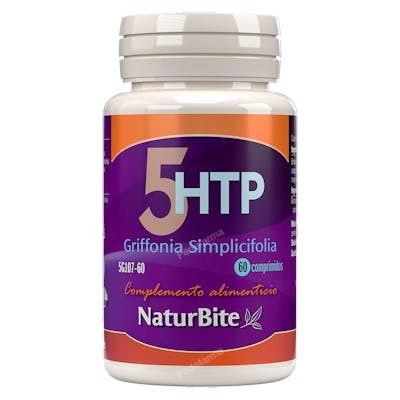 Composicion: Extracto de Grifonica Simplicifolia (semillas), Agente de carga (Celulosa microcristalina), Antiaglomerantes (sales magnesicas de acidos grasos, Dióxido de silicio). Por 1 comprimido: Extracto de Griffonia simplicifolia (semillas) 490 mg aportando 20% de 5HTP (L5-Hidroxitriptofano) 98 mg *Puede contener gluten y lactosa.