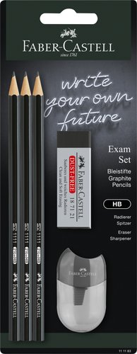LAPIZ de GRAFITO FABER-CASTELL 1111 - HB SET para EXAMEN 3x LAPICES 1x GOMA DE BORRAR 1x AFILALAPIZ CON DEPOSITO