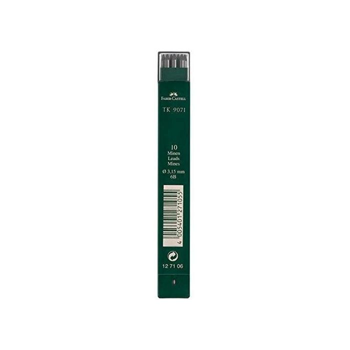 Faber Castell Minas TK 9071 Dibujo 3,15 mm 6B Negro Intenso Estuche 10 Ud