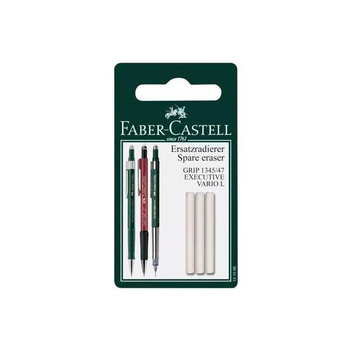 Faber Castell Goma de Borrar para Portaminas, Blíster 3 Unidades, Borrado sin Manchas