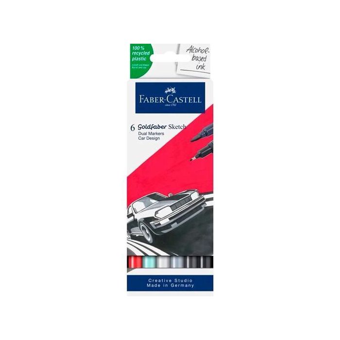 Faber Castell Rotuladores Goldfaber Doble Punta Fina-Pincel, Set Coche 6 Ud, Tinta Alcohol, Resistente Agua