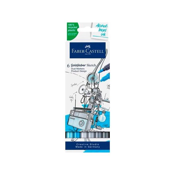 Faber Castell Goldfaber Rotuladores Bocetos Doble Punta Fina-Pincel Set Diseño 6 Ud