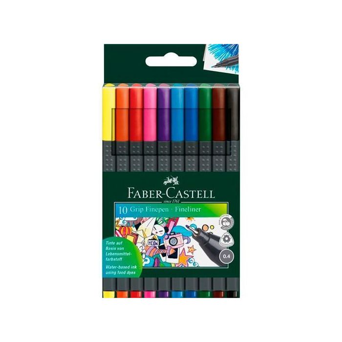Faber Castell Rotuladores Grip Finepen 0,4 mm Estuche De 10 Colores Surtidos