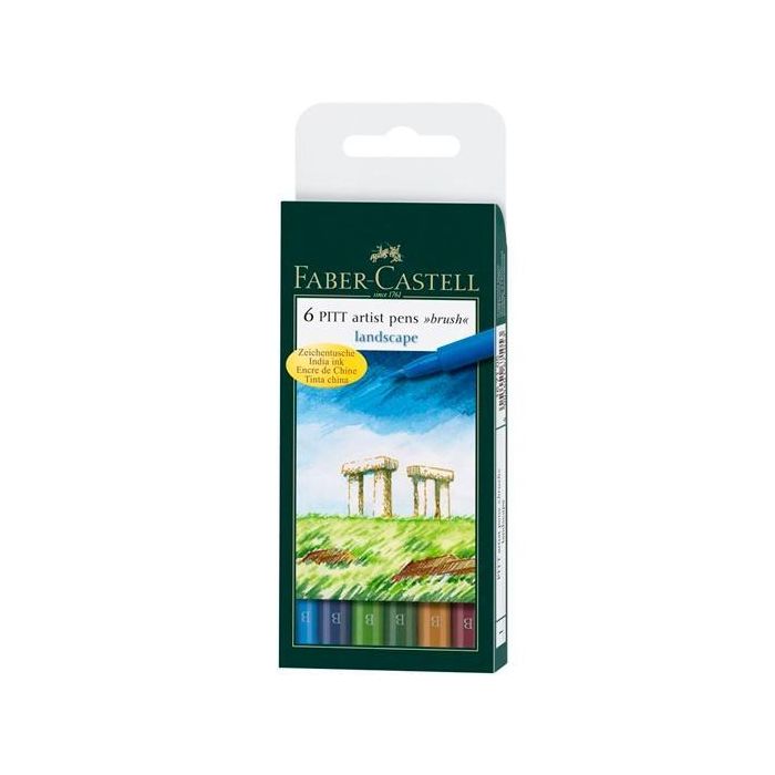Faber Castell Rotuladores Pitt Artist Pen Brush Punta Pincel Paisaje Estuche 6 Ud