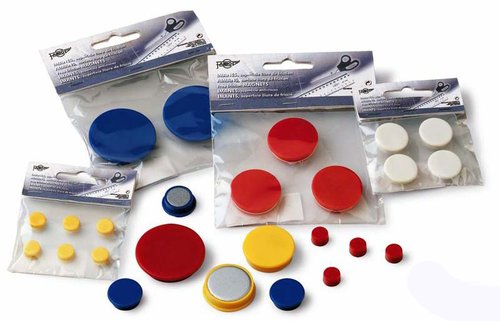 Blíster de imanes redondos unicolor para oficina, pizarra, planning o vitrinas. 100% reciclable.