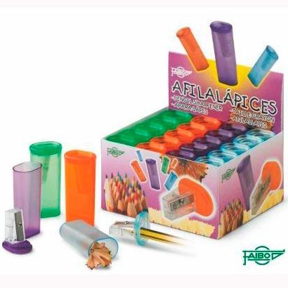 Un uso. Para lápices finos. Afilalápices en plástico y cuerpo en poliestireno. Medidas: 60x28x20 mm.