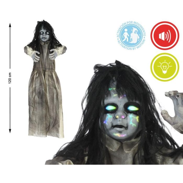 Muñeca Fantasma Colgante Con Sonido, Luz Y Sensor 120x90 cm Halloween
