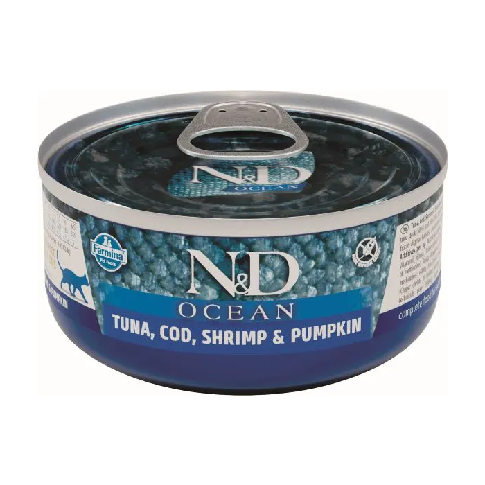 El alimento para gatos Farmina N&D Cat Ocean es una opción premium formulada con una nutritiva combinación de atún, bacalao y calabaza, ideal para la dieta diaria de tu felino. Este conveniente pack incluye 30 unidades de 70 gramos cada una, diseñado para ofrecer una alimentación completa y equilibrada. Con la calidad garantizada de la marca Farmina, la línea N&D Cat Ocean satisface las necesidades nutricionales de los gatos, proporcionando ingredientes cuidadosamente seleccionados.