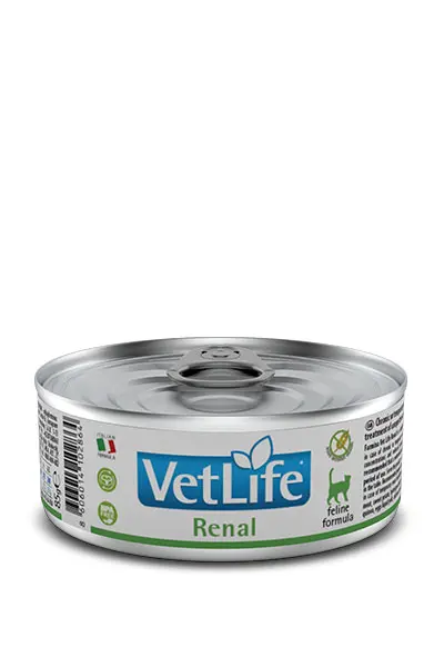 Farmina Vet Life Renal es un alimento dietético completo formulado para el soporte de la función renal en gatos con insuficiencia renal temporal o crónica. Presenta bajas concentraciones de fósforo y moderado contenido en proteínas, pero proteínas de muy alta calidad.