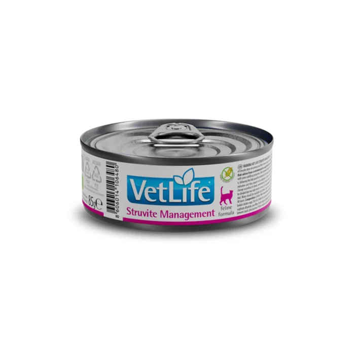 Farmina Vet Life Struvite Management es un alimento dietético completo para gatos, diseñado específicamente para la reducción de la recurrencia de cálculos de estruvita. Este producto de la marca Farmina proporciona una nutrición equilibrada y especializada para ayudar en el manejo de esta condición urinaria común en felinos.