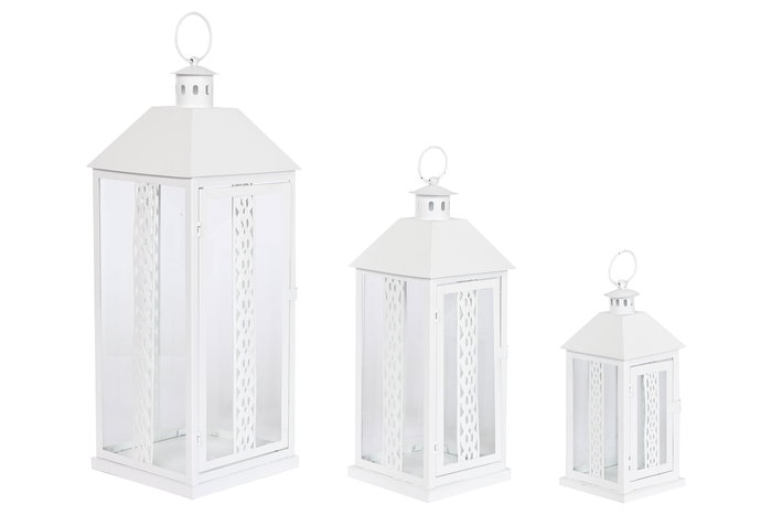 Farola Shabby DKD Home Decor Blanco Hierro y Cristal Set de 3 Piezas 20 x 55 x 20 cm