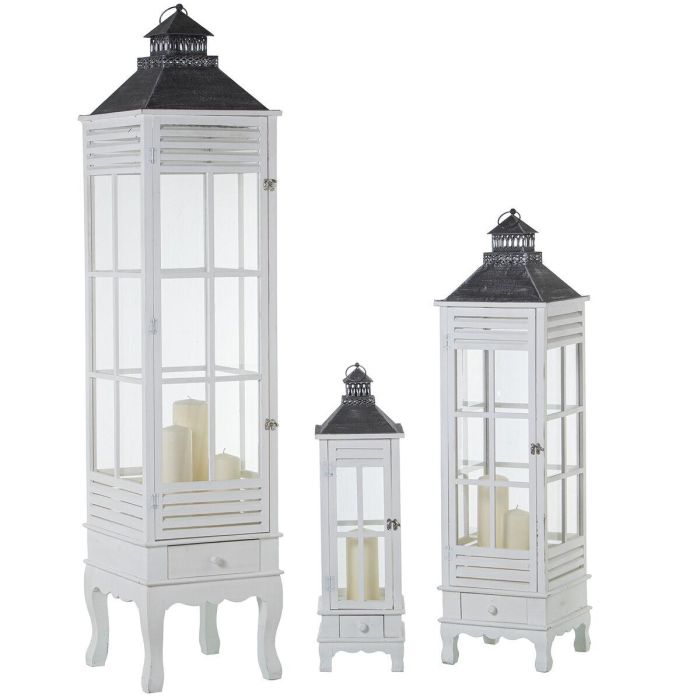 Faroles Alexandra House Living Blanco Madera Cristal Madera de abeto (3 Piezas)