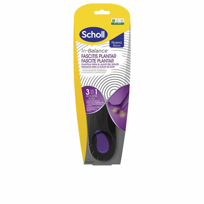 Scholl Plantillas Anti-Dolor Fascitis Plantar con Tecnología In-Balance 3 en 1, Soporte de Arco y Amortiguación Talla S 37-39.5, 1 Unidad