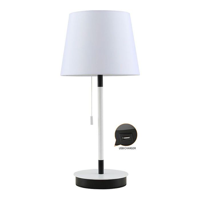 Fbright Lámpara de Mesa E27 Blanca/Negra con Cargador USB Ø235 x 505 mm
