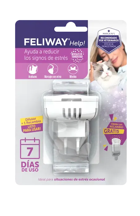 El Difusor+Recambio Feliway Help de Ceva es la solución ideal para ayudar a calmar y reconfortar a tu gato en situaciones de estrés.