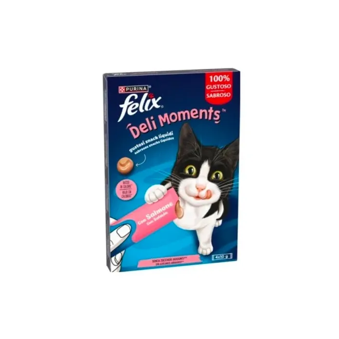 Ofrece a tu gato la calidad y el sabor que se merece con Purina Felix Deli Moments Salmón.