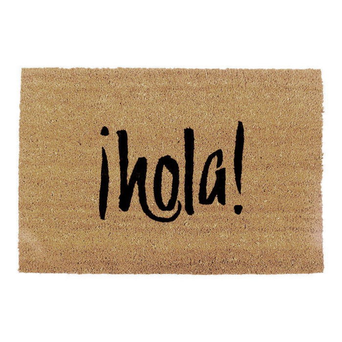 Felpudo de fibra de coco modelo hola, 60 x 40 cm, parte posterior: vinilo de pvc, color marrón y negro