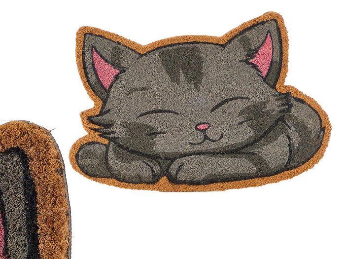 Felpudo Forma Gato Giftdecor 60x1.5x40cm Fibra de Coco y PVC Gris/Rosa (Set de 10)