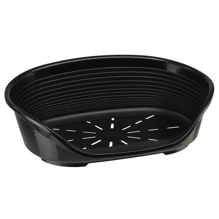 Cama de plástico Siesta Deluxe 6 para perros y gatos de la marca Ferplast. Modelo en color negro. Diseñada para proporcionar un cómodo descanso a tu mascota.