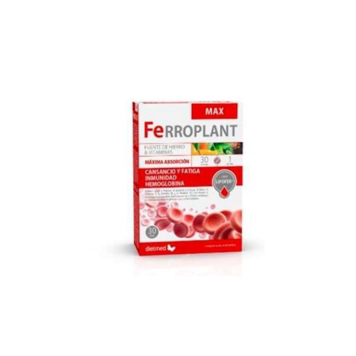 DIETMED Ferroplant Max 30 Comp. Complemento alimenticio con Hierro, Vitaminas B y C para Energía y Absorción Óptima