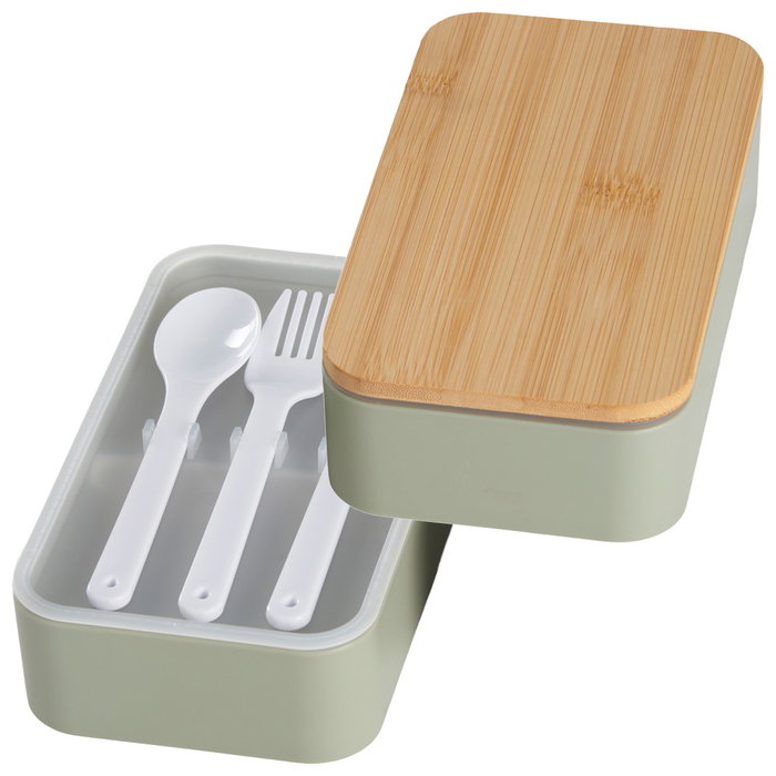 Day Fiambrera 2 Pisos Con Cubiertos, Tapa Bambú, 700ml, Colores Naturales