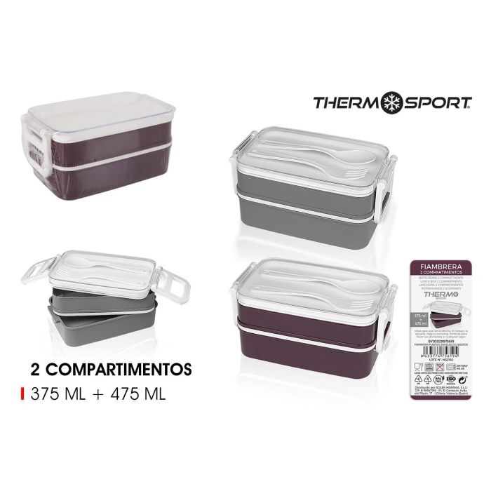 Thermosport Fiambrera Plástico 2 Niveles con Cubiertos 17,9 cm x 10,5 cm x 8,2 cm