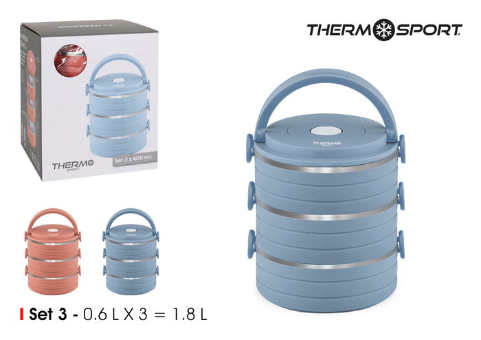 Thermosport Fiambrera Plástico Acero 0.6L - Dimensiones: 15.6 cm Ancho x 18 cm Alto x 15.3 cm Largo (6 Unidades)