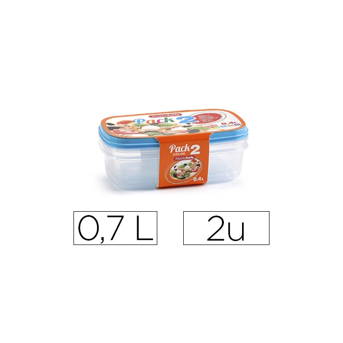 Plasticforte Fiambrera Transparente Tapa Color 0.7 Litros Pack 2 Unidades Libres de BPA Aptas Microondas Lavavajillas Congelador