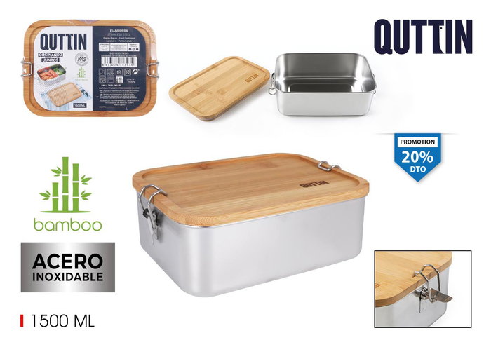 Fiambrera Ss Tapa Bambu Rect.1500Ml