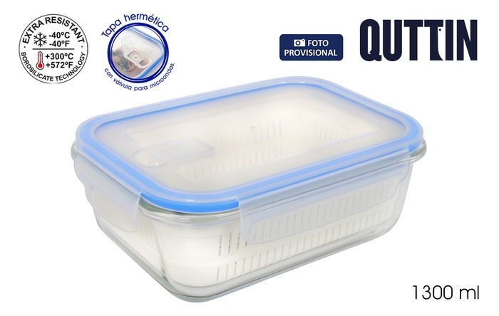 Fiambrera Rect.Hermet 20.5X15.3Cm 1.3L C/Escurrid
