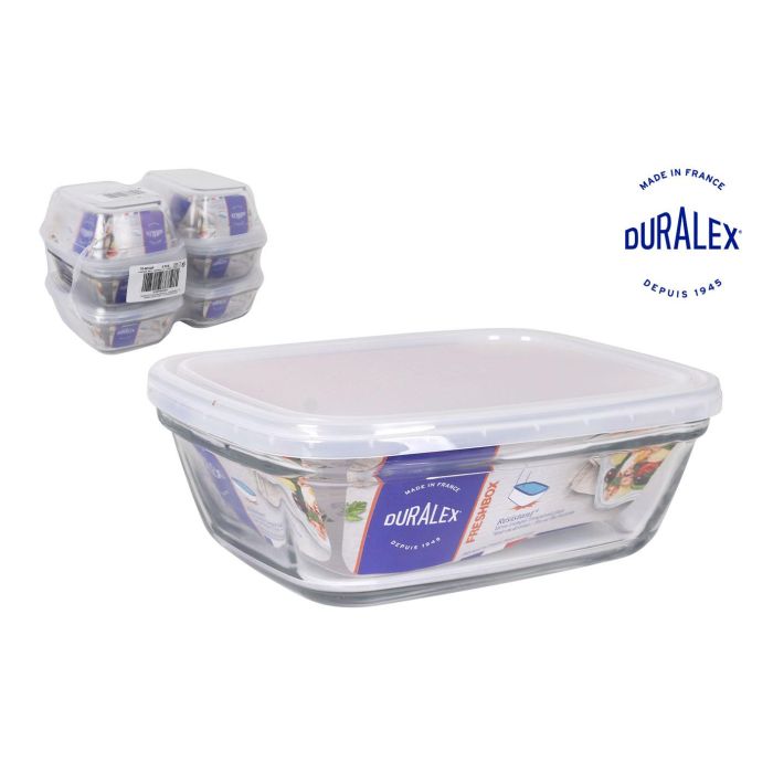 Duralex Fiambrera Rectangular 1.1L 20 cm x 14.6 cm x 6.5 cm con Tapa Transparente (6 Unidades)