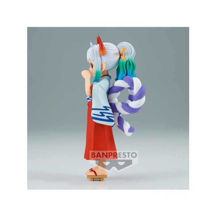 Banpresto presenta la figura de Yamato, personaje de la serie de anime One Piece Dxf The Grandline Children Wanokuni Vol.3. Se trata de una figura de PVC que mide 13 cm e incluye una base de exposición.