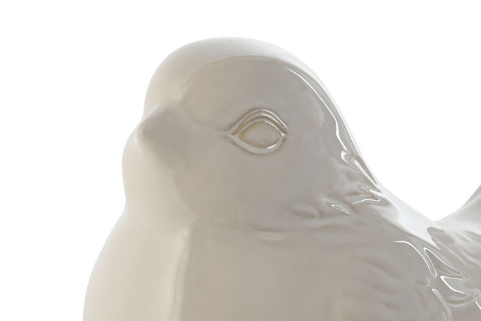 DKD Home Decor Figura Decorativa de Cerámica Blanca con Diseño Gorrión Estilo Cottage, Adorno para el Hogar y Jardín, Medidas 17x17x24 cm