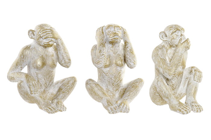 DKD Home Decor Figura Tropical Mono Dorado Resina 17 x 25 x 21 cm (3 Unidades)