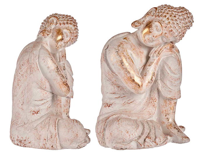 BUDA POLIRESINA CABEZA LADO DERECHO BLANCO Y ORO