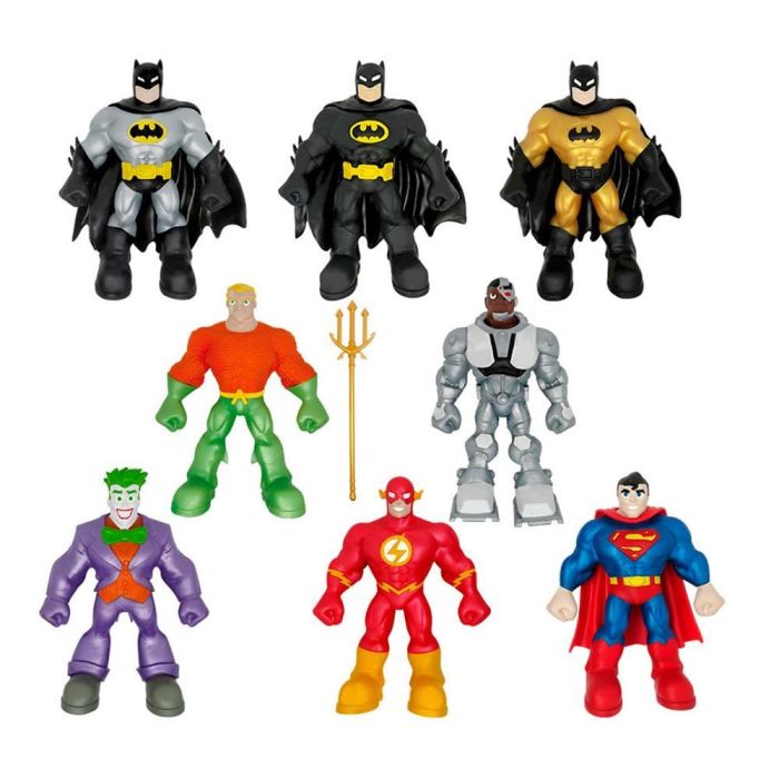 La colección Monster Flex DC incluye 8 modelos diferentes, todos ellos inspirados en héroes y villanos del universo DC. Algunas figuras incorporan accesorios removibles, lo que añade un extra de interactividad y personalización al juego.