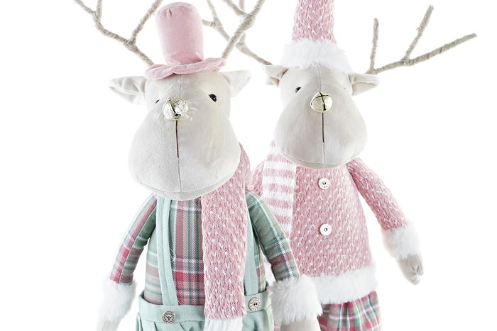 DKD Home Decor Figura Navidad Fantasia Reno Poliester Verde Rosa Blanco 17 x 60 x 20 cm