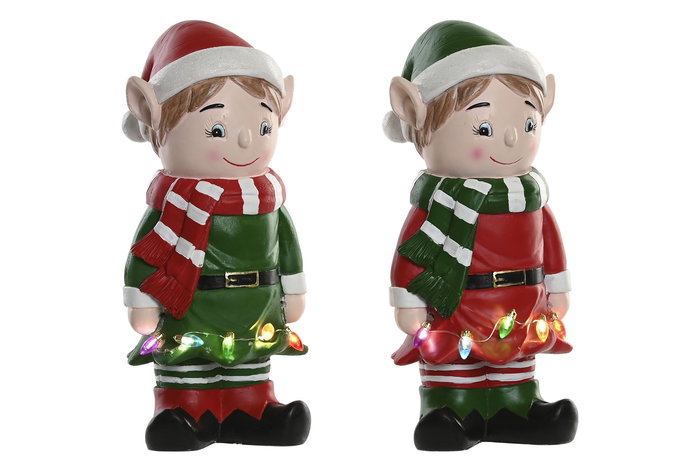 DKD Home Decor Figura Navidad Tradicional Elfo Multicolor Magnesia LED 13 x 32 x 15 cm (2 Unidades)