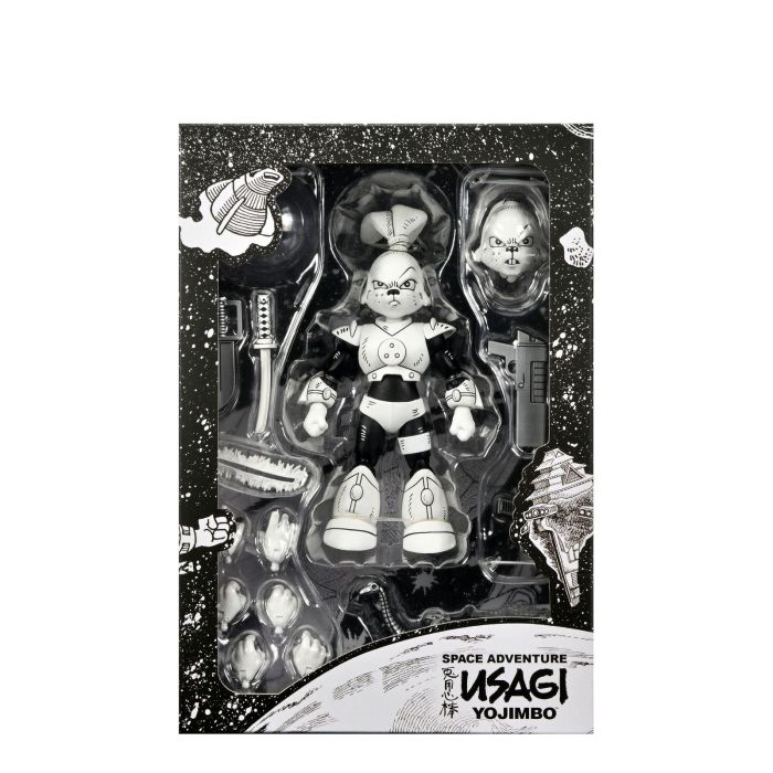 La figura Space Usagi Yojimbo Black & White de la colección Scale Action de NECA es una pieza imprescindible para coleccionistas y fans del universo de Usagi Yojimbo. Con una altura de 18 cm y un diseño realizado en colaboración con Stan Sakai, creador del cómic original, esta figura combina detalle, articulación y versatilidad para recrear escenas icónicas del manga y cómics de ciencia ficción.