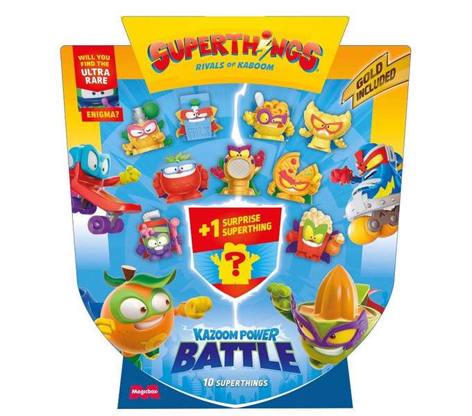 Figura Superthings Kazoom Power Battle Ten Pack, incluye 10 figuras (8 normales, 1 gold y 1 sorpresa) - Modelos surtidos