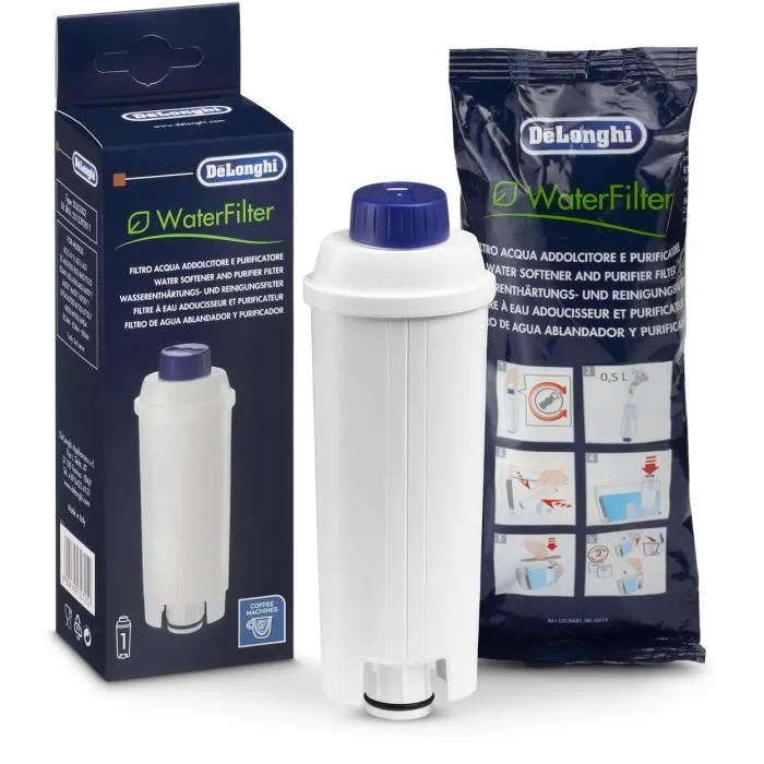 El cartucho de filtro de agua DLSC002 de DeLonghi es un componente esencial para mantener la calidad óptima del agua en las cafeteras espresso de la serie ECAM, garantizando un rendimiento superior y prolongando la vida útil del equipo. Este filtro de agua está fabricado en plástico blanco, diseñado para integrarse perfectamente en los sistemas de filtración de la marca. Su función principal es la eliminación eficiente de la cal y otras impurezas, lo que contribuye a evitar la acumulación de depósitos minerales en el interior de la cafetera, asegurando así un café con sabor cristalino y sin alteraciones. Además, este cartucho ayuda a reducir el mantenimiento y la necesidad de limpiezas frecuentes, facilitando un uso continuado y fiable del aparato. Su compatibilidad está orientada específicamente a modelos DeLonghi ECAM, optimizando el flujo de agua y preservando las propiedades organolépticas del café durante su preparación. Gracias a su diseño compacto y fácil instalación, el filtro DELONGHI 5513292811 ofrece una solución práctica y eficaz para quienes buscan mantener la pureza del agua en sus máquinas de café, apoyando un funcionamiento constante con resultados de alta calidad. En resumen, este filtro es un accesorio técnico clave para conservar el rendimiento y la durabilidad de las cafeteras espresso DeLonghi, asegurando una experiencia de café óptima.